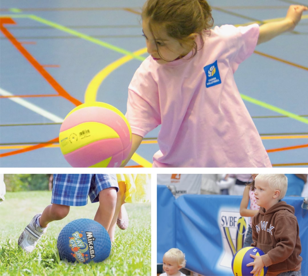 ネットを張った両サイドに分かれて、相手方とボールのやりとりを行います。その代表例はバレーボール。オフィシャルボールと同じデザインです。